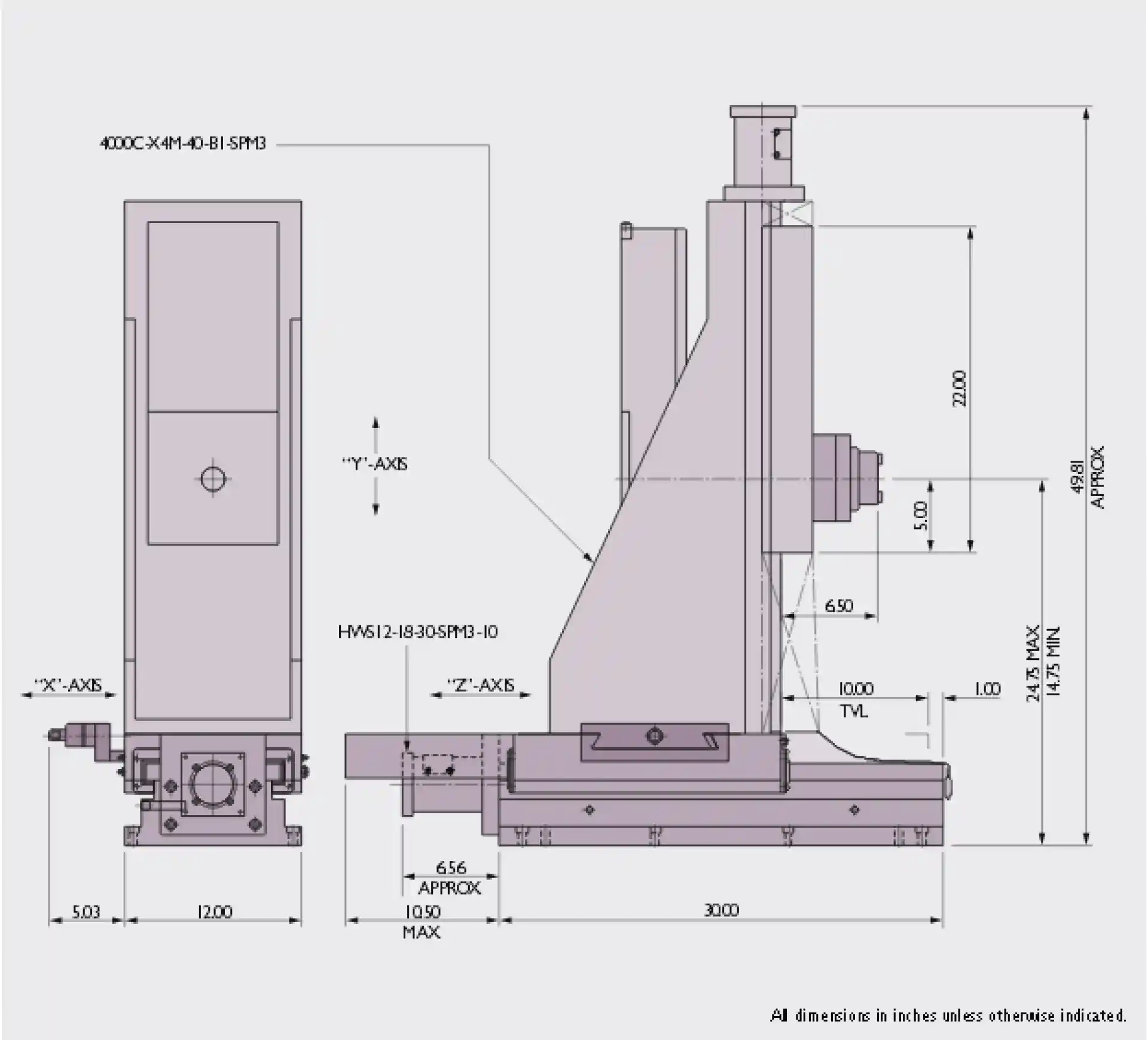 “Y” Axis Vertical Slide: Model No. (4000C-X4M-40-BI-SPM3)