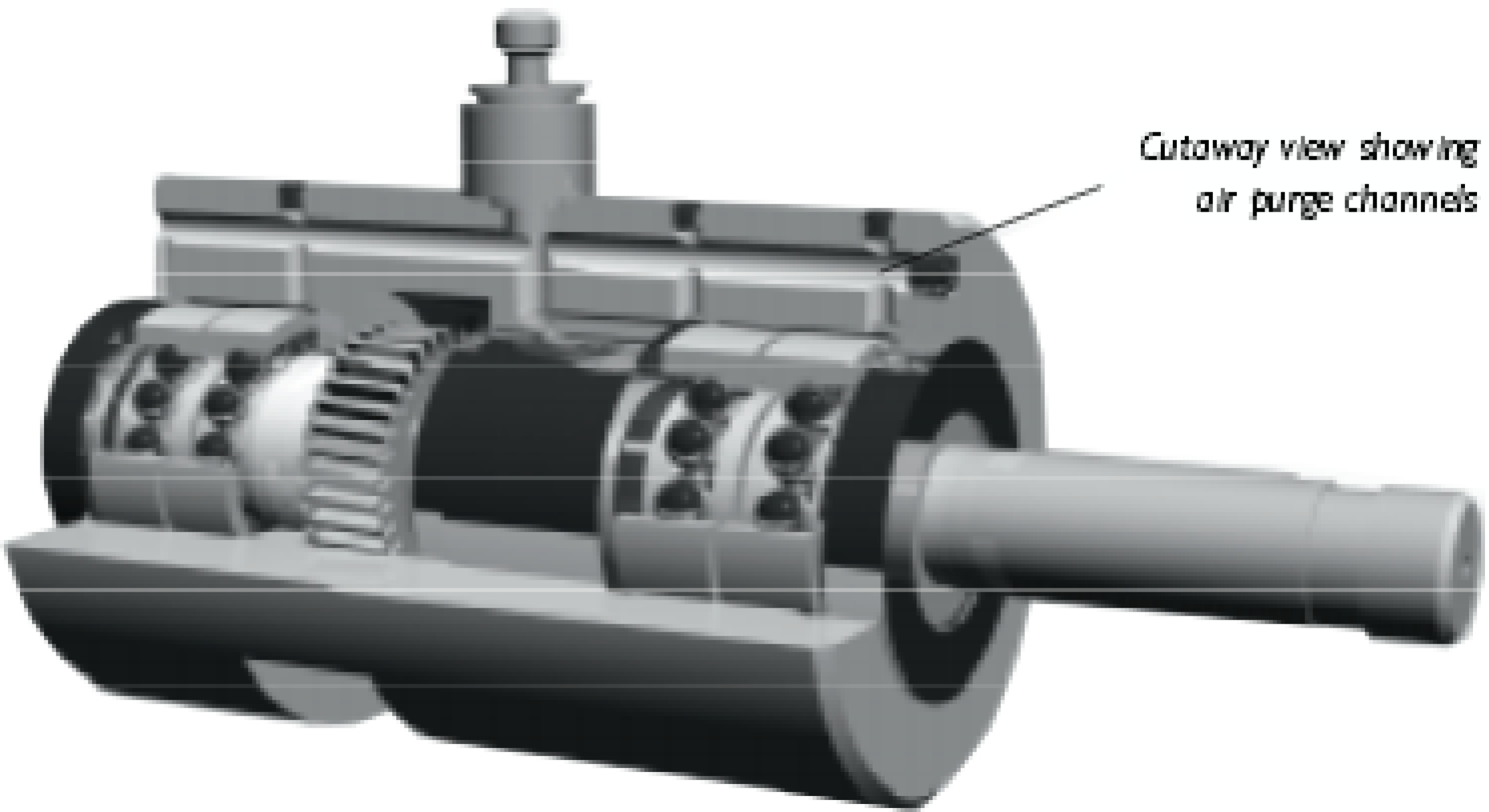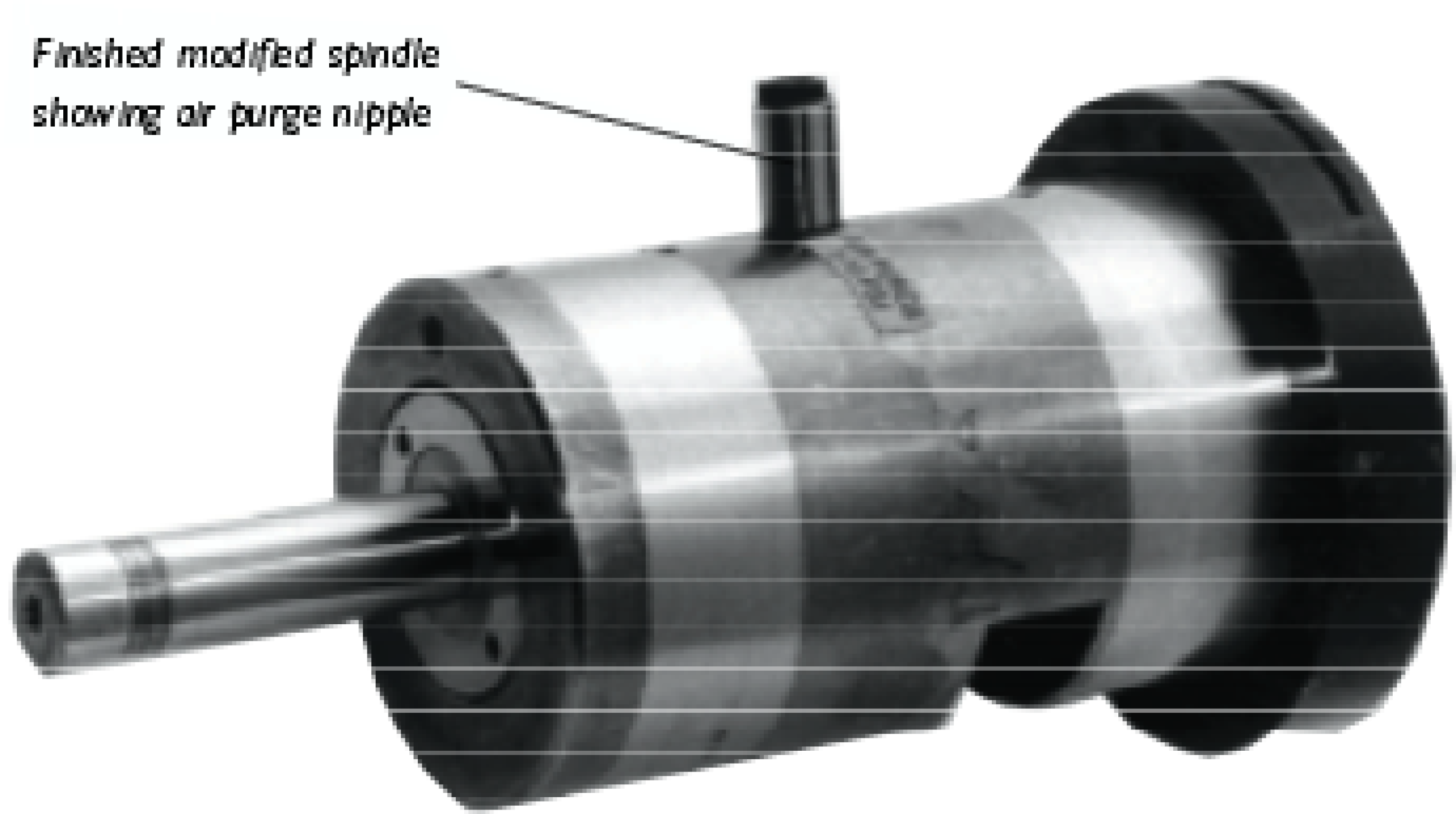To determine the cause of shortened spindle life, a team of Gilman engineers interviewed the manufacturer and conducted an exhaustive investigation of parts, processes and environmental conditions. The “customer- manufacturer” investigation team concluded the following: during the 30,000 RPM filament winding operation, fine dust-like particles of filament material were becoming airborne. Upon entering and contaminating the bearing chamber, these particles were creating friction and destroying the bearings. After isolating the cause, Gilman engineers offered a creative solution to increase spindle life: they modified the housing by drilling passageways to allow for low-pressure, clean, dry air to be pumped into the bearing case, pressurizing the area. The pressurized airflow forced the contaminants out of the bearing case, achieving a substantial increase in spindle life consistent with the customer’s original 24-month specification. With the contamination problem solved, the spindle was repaired. Finally, Gilman Spindle Service proposed a phased replacement program to ensure that the hundreds of spindles involvedin the filament winding process were modified on a systematic basis, sparing the costly inconvenience of shutting down production.